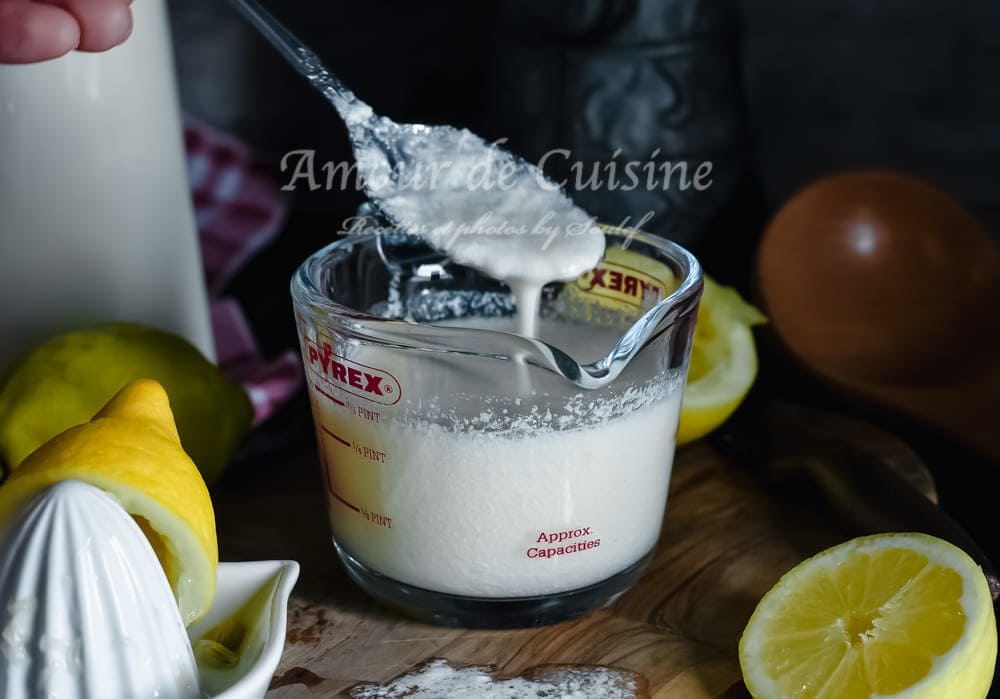 - Ajoutez le jus de citron ou le vinaigre blanc : Incorporez 1 cuillère à soupe de jus de citron fraîchement pressé (ou de vinaigre blanc) pour 250 ml de lait.