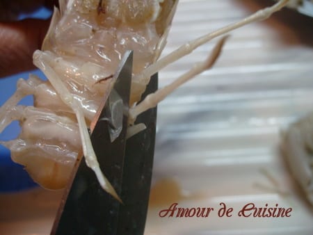 On peut toujours enlever la carapace complète des cigales de mer pour ne cuire que la chair, mais je trouve personnellement que la carapace donne un gout particulier au plat.