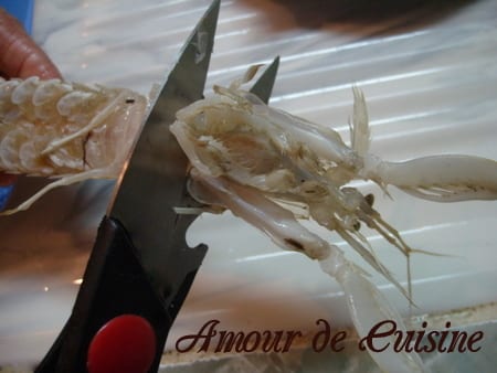 - Commencez par nettoyer les cigales de mer, pour cela munissez vous de ciseaux de cuisine