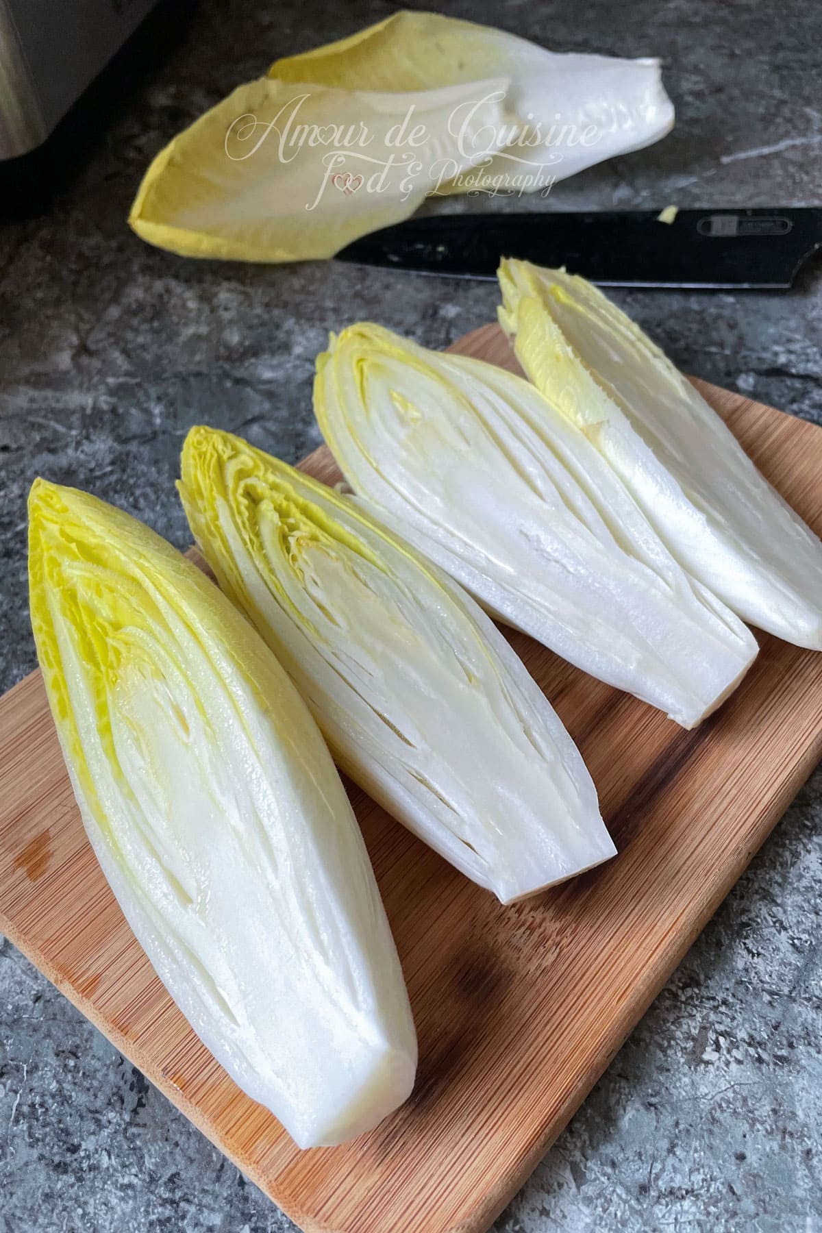 - Coupez les endives en deux dans la longueur.