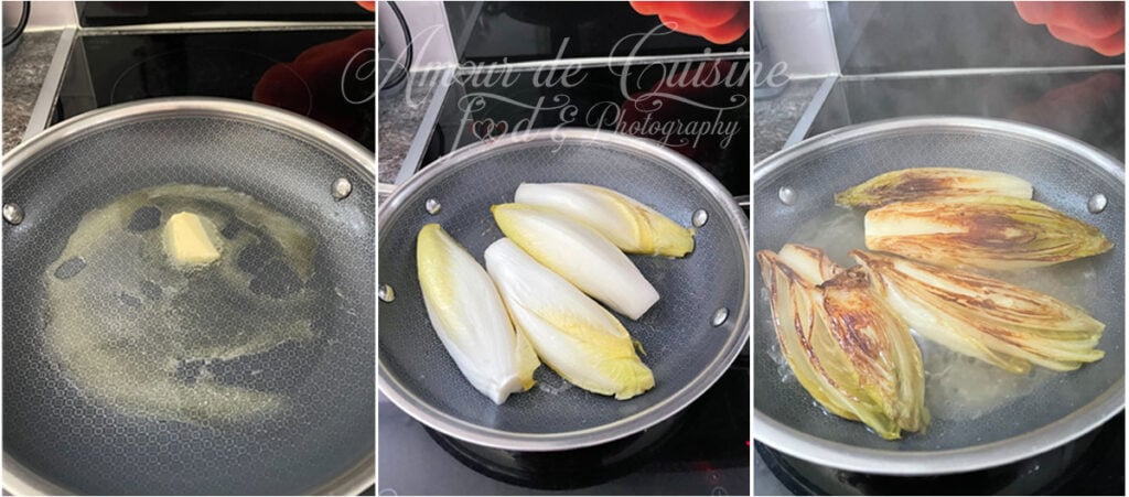 Cette étape est importante : elle apporte plus de goût et permet d’obtenir de belles endives braisées, bien dorées.