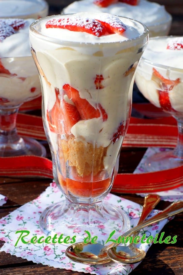 J’en oublie des recettes dans mes archives, et en voila une recette de Lunetoiles qui datent de 2013. Merci a Lunetoiles qui m’a fait rappeler cette recette au bon moment, la saison des fraises. Alors pourquoi ne pas profiter, et réaliser ces belles verrines de fraises et crème bagatelles?