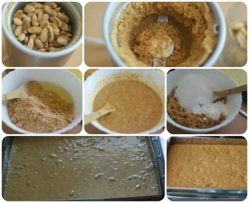 - Dans un saladier, mélangez les cacahouètes moulues, le sucre, la poudre pour flan à la vanille et la levure chimique.
