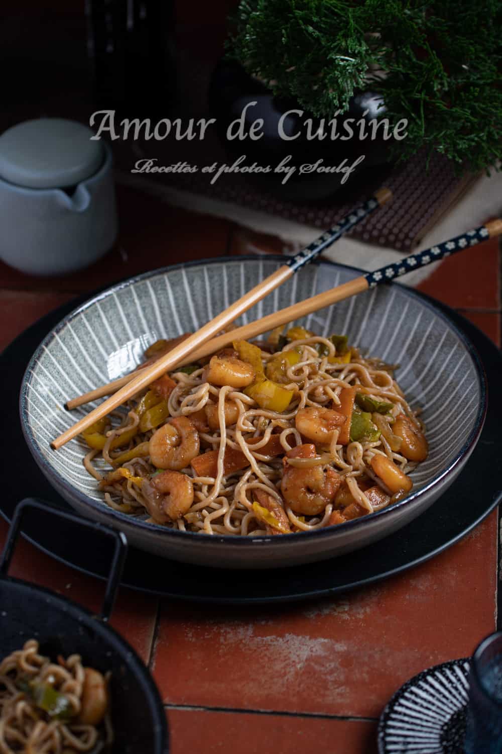 La cuisine asiatique doit absolument être au menu avec mes enfants. Cette fois propose un Konjac aux crevettes et légumes.