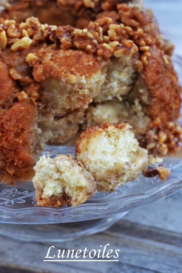 Je suis en mode brioche ces jours ci, et la c’est le monkey bread: Un monkey bread aux noix de pécan. Une brioche super délicieuse, différente en présentation des autres brioches, mais elle reste une petite énigme coté nomination… Monkey bread qui veut dire le pain singe….