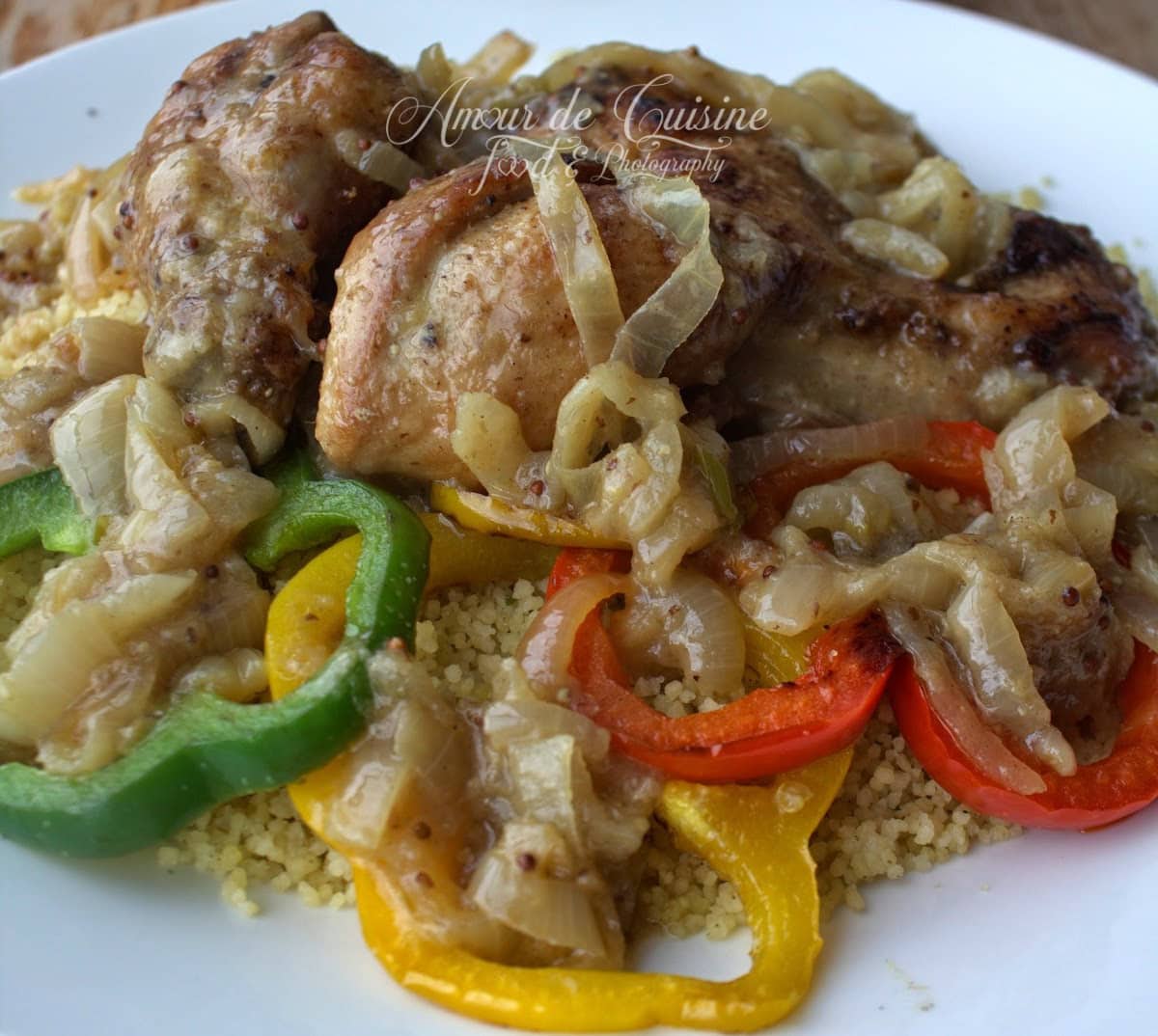 Ça fait un bout de temps que je n’ai préparé cette recette de poulet yassa au couscous. J’en profite surtout, car j’avais des reste de couscous cuit à la vapeur au congélateur.
