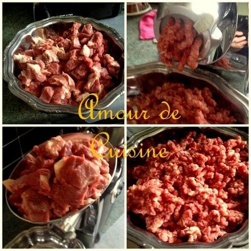 - Coupez la viande en morceaux , et passez dans la hachoir ( pièce a grands trous)