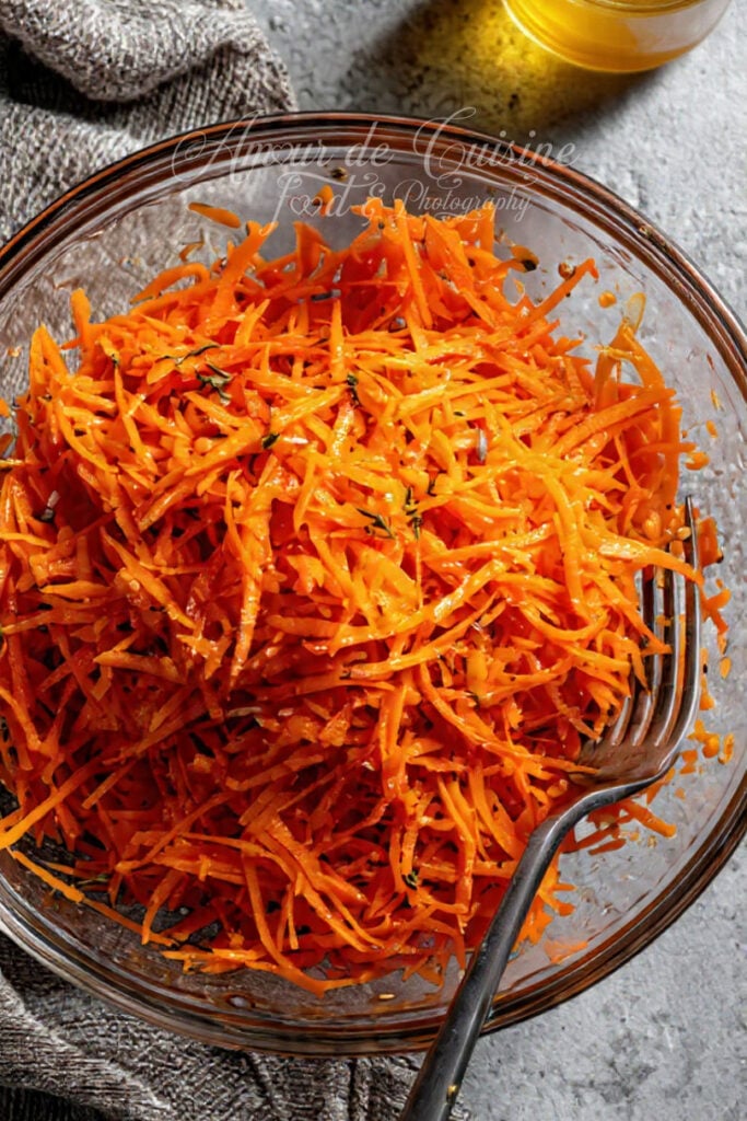 – Version épicée : une pincée de cumin ou de paprika : Le cumin réchauffe la saveur, le paprika arrondit le tout : excellent pour relever la moutarde sans masquer la fraîcheur des carottes.