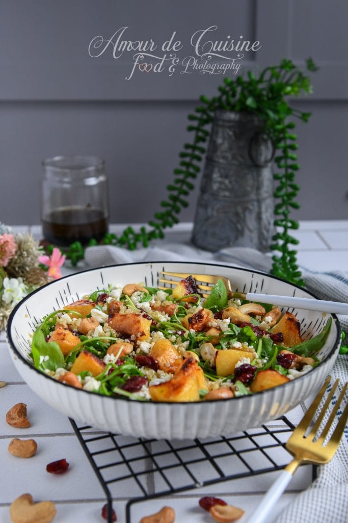 Salade sucree salée de coings rôtis, quinoa et roquette