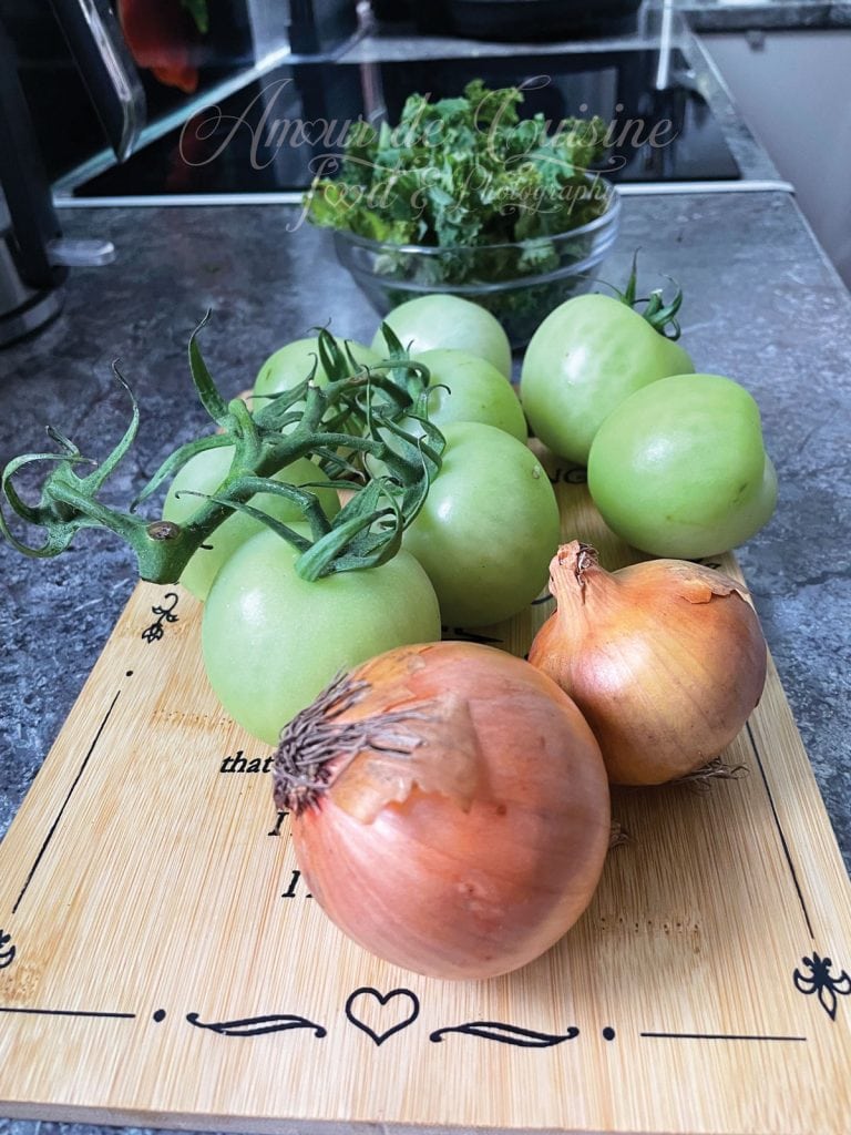 C’est assez rare de trouver des tomates vertes chez moi, alors chaque passage à Londres devient l’occasion d’en ramener un bon stock.