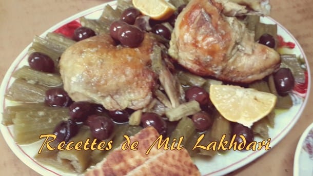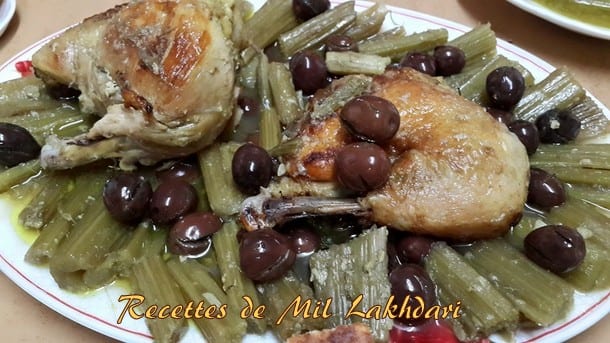 Vous aimez les cardons, ce legume peu calorique bien riche en mineraux (potassium, calcium) et très riche en fibres, alors voila une bien délicieuse recette pour vous, un tajine tout bon et facile a faire, le tajine de cardons aux olives. Vous pouvez utiliser des olives vertes, mais avec des olives violettes ce tajine est encore plus délicieux.