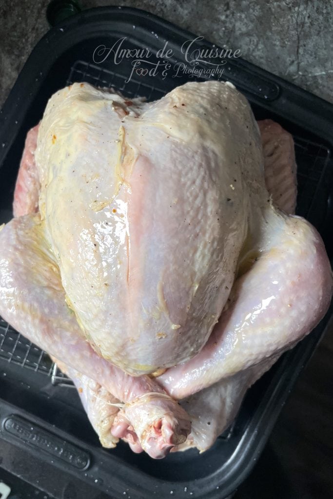 This step is what gives you ultra-juicy meat and beautifully golden skin after roasting.